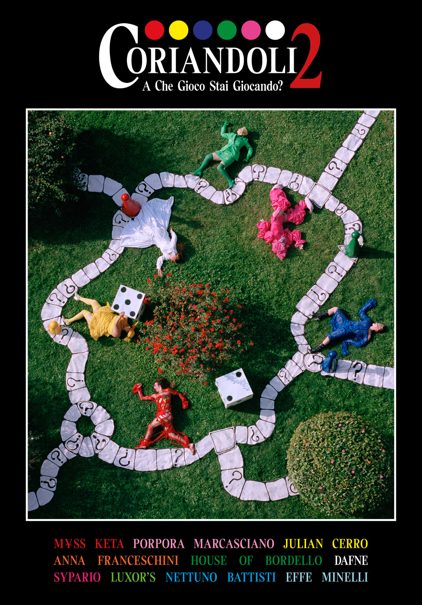 In the colourful pages of the magazine the reader will dive into ‘Conciati Per Le Feste’, a board game entirely written, drawn and photographed by Coriandoli. Meet its strange protagonists, wear the most magical ensembles and live the daily life of a true party monster.