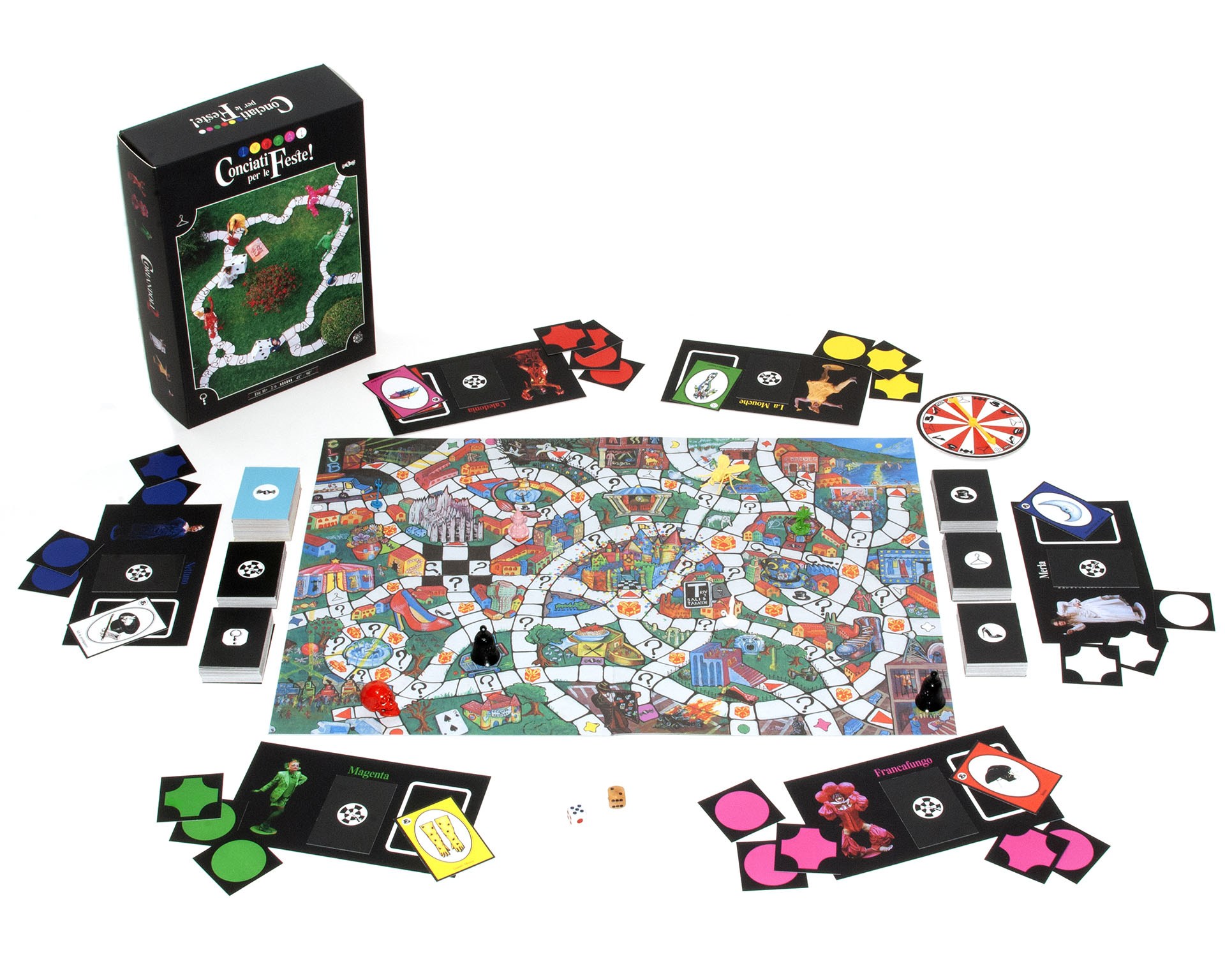 Upon release of their second issue, Coriandoli wrote and produced a fully playable limited edition board game in 10 numbered copies. Intended as a collector’s item, “Conciati Per Le Feste!” contains hundreds of cards, figurines and novelty objects. The game’s riveting storylines and unpredictable twists will transport each player into the colourful Coriandoli universe, where they will face countless adventures dressed as their favourite character (6 different colour options and wardrobes). Explore the game HERE!